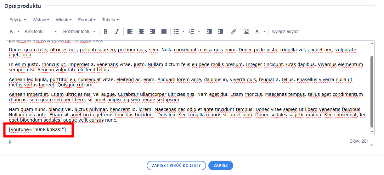 - Odszukaj produkt, dla którego chcesz dodać film i przejdź do jego edycji.