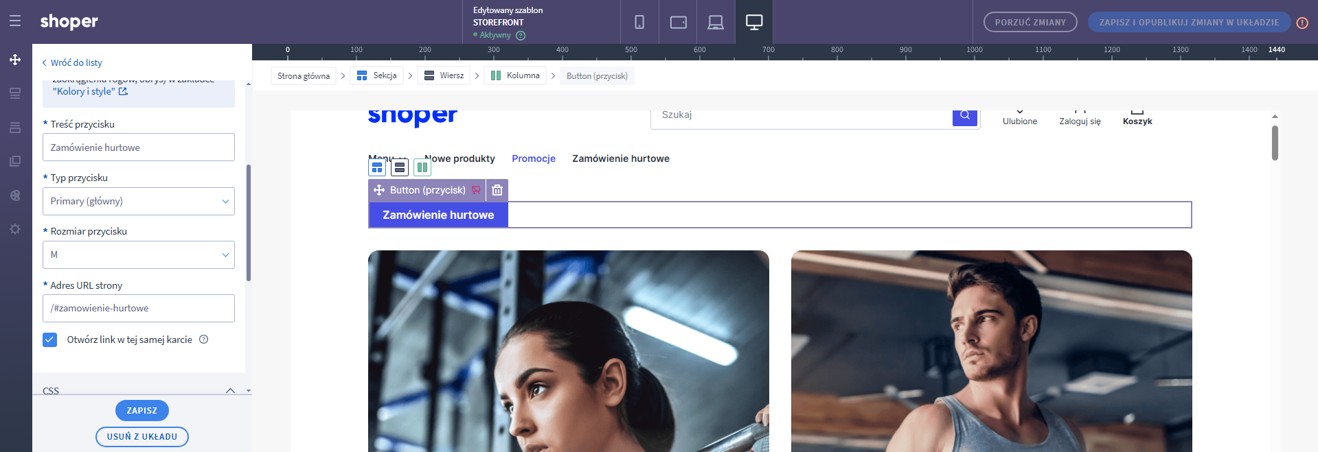 Wstawianie przycisku w Visual Shoper Editor