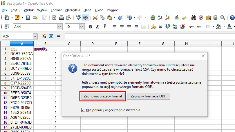 - Kliknij przycisk Zachowaj bieżący format.