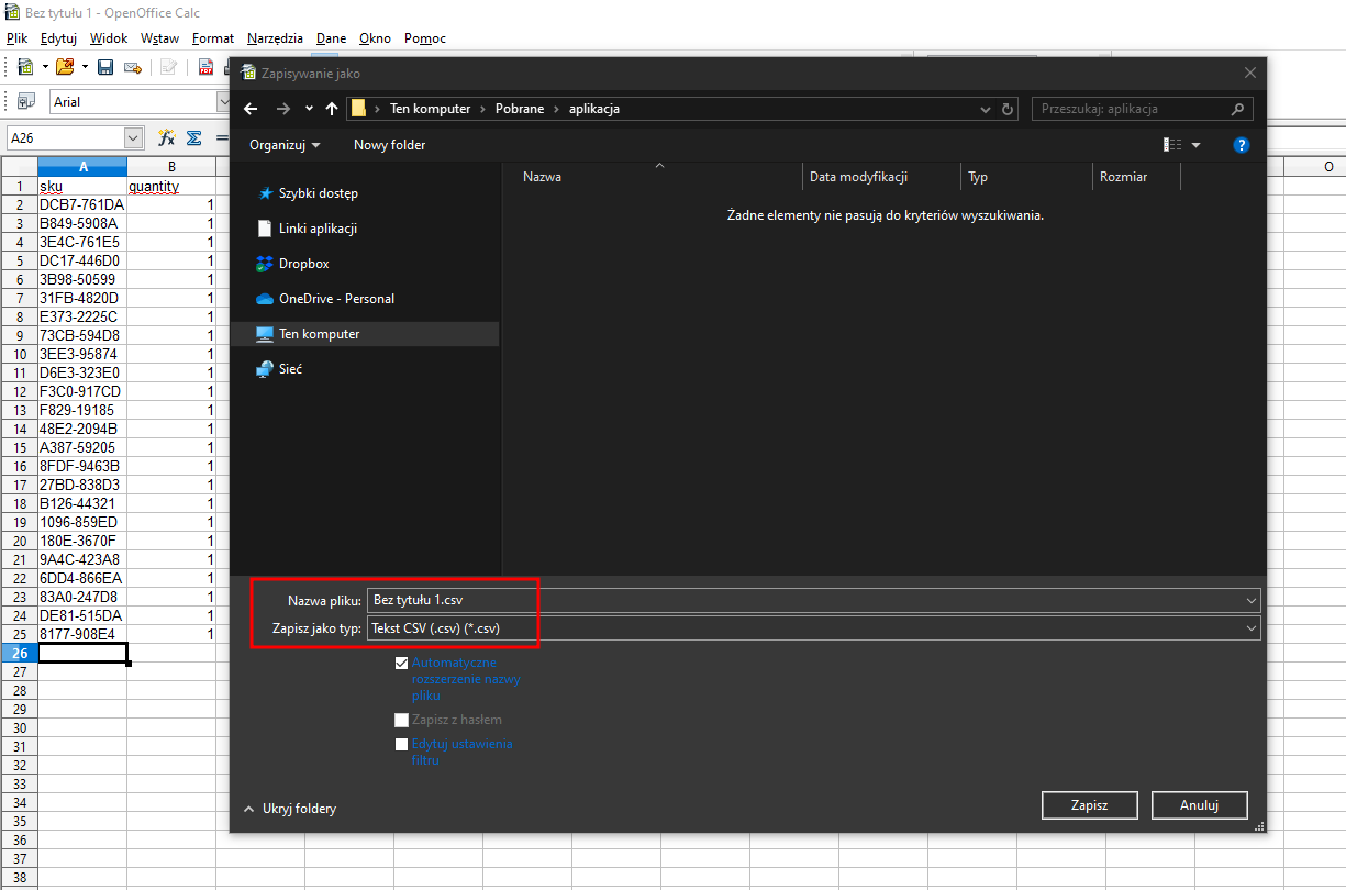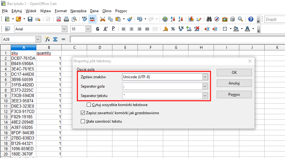 Przygotowywanie pliku w OpenOffice Calc