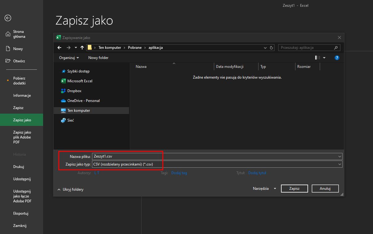 Przygotowywanie pliku w Microsoft Excel