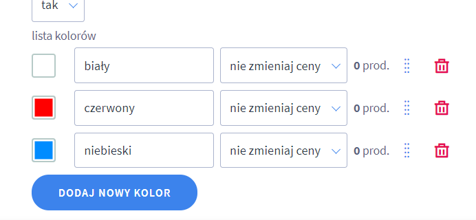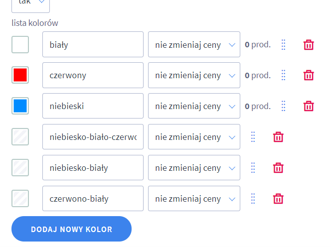 Dodawanie wielokolorowych wariantów produktów