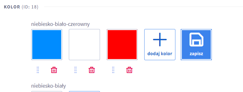 Dodaj kolory podstawowe (np. niebieski, biały, czerwony), które wykorzystasz do zbudowania wersji wielokolorowej oraz dla produktów w jednym kolorze.