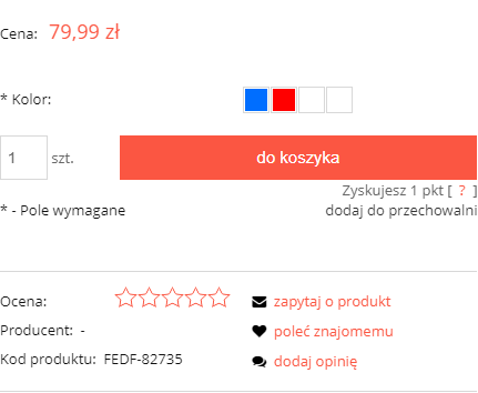 - Wybierz kolory, w których występuje dany produkt.